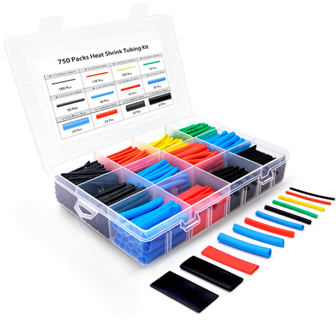 750 Uds. Relación de contracción de colores surtidos 2:1 envoltura retráctil de grado marino Kit de tubería termorretráctil industrial automotriz