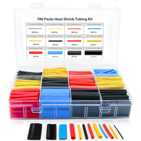 780 Uds. Tubo de envoltura retráctil de alambre de relación 2:1 para aislamiento eléctrico, agrupación y reparación de cables, Kit de tubos termorretráctiles versátiles