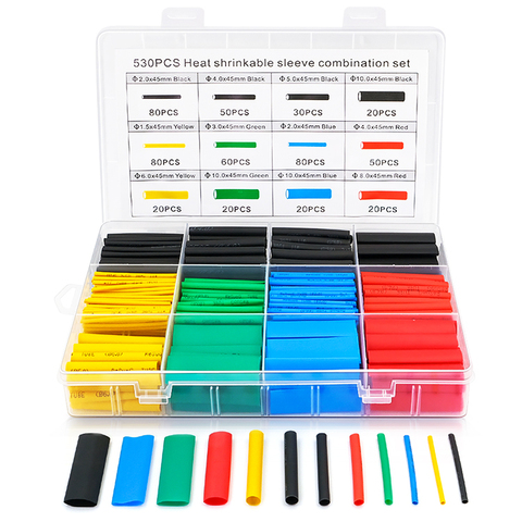 530 Uds DIY 5 colores 12 tamaños 2:1 relación de contracción de aislamiento eléctrico manga de envoltura de alambre Kit surtido de tubos termorretráctiles
