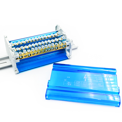 WDH 411 4 niveles monofásico eléctrico latón Barra colectora ingeniería carril Din distribución de energía caja de conexiones bloque de terminales